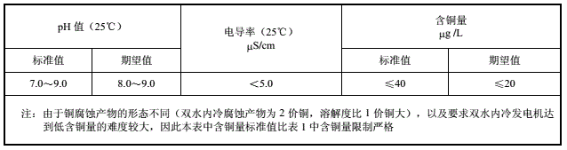 2、雙水內(nèi)冷發(fā)電機內(nèi)冷卻水水質(zhì)控制標準